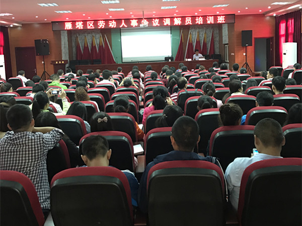 本次集中培训由雁塔区人力资源和社会保障局主办,主要针对雁塔区基层调解组织调解员和企业人力资源人员,雁塔区劳动人事争议仲裁委员会主任田辉主持,雁塔区人力资源和社会保障局副局长黄伟琳出席并讲话,强调应加强基层调解员和企业人力资源人员对劳动法的学习和认识,妥善处理好劳动者和用人单位之间的矛盾,促进社会和谐发展。