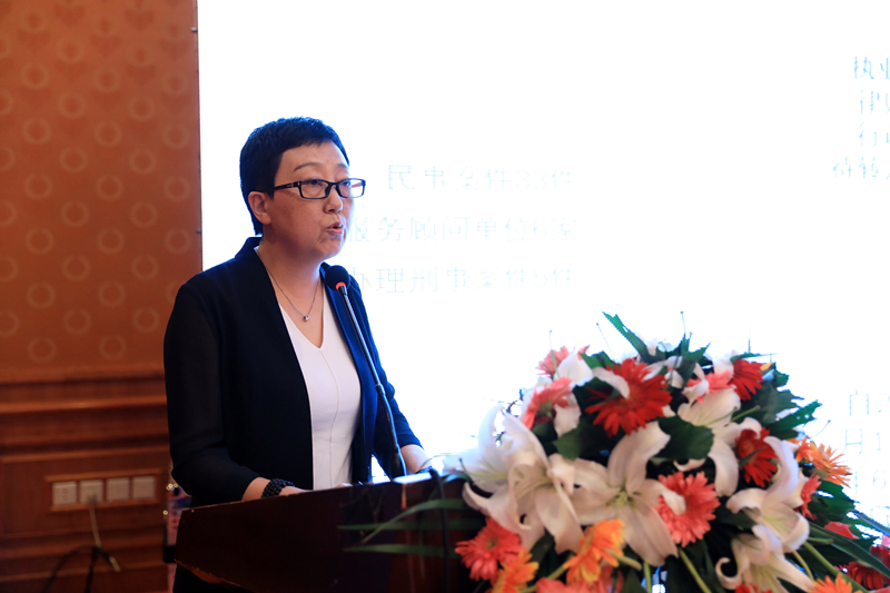第三项 律所管理合伙人、运营总监孙婷作《2017年上半年客户管理与市场拓展工作总结》,展示了客户管理部整合平台资源、汇聚律所优势,努力打造法律服务新市场和新空间的工作成果,并就律所公共业务的发展与管理提出了问题、分析和建议。